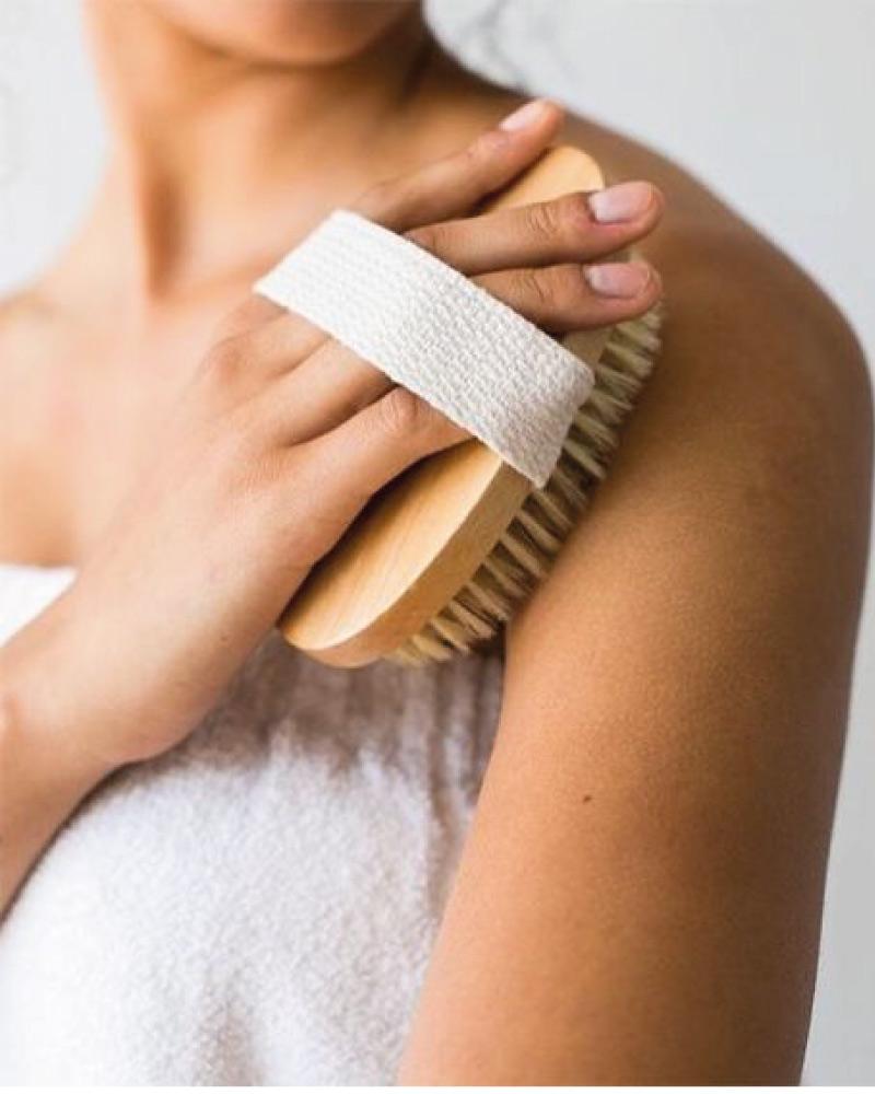 – Cepillo corporal:  el cepillado en seco estimula el drenaje linfático y el flujo de desintoxicación natural del cuerpo, al mismo tiempo que exfolia suavemente la superficie de la piel para revelar una piel fresca y radiante debajo